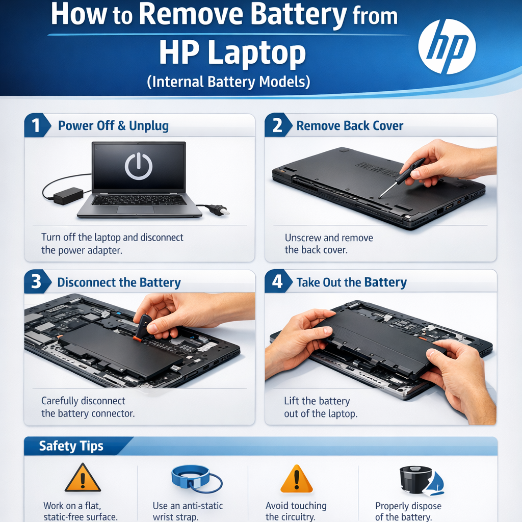 Steps for HP Laptop Battery Removal: