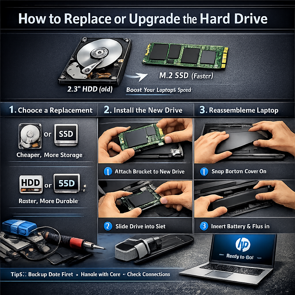 Doing the HP laptop hard drive replacement yourself is straightforward if you follow a good guide and take your time. Just remember to back up your data first! If your laptop has a special design or the drive is hidden under the motherboard, you may need extra tools or a bit more patience.